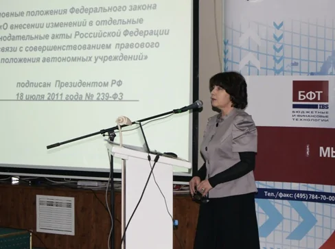 На круглом столе заместитель директора Департамента бюджетной политики в отраслях социальной сферы и науки Министерства финансов РФ М.Ю. Алашкевич и заместитель директора Департамента бюджетной политики и методологии Министерства финансов РФ Т.В. Саакян рассказали о работе, которую Министерство финансов РФ провело в 2011 году по методологической поддержке реализации Федерального закона № 83-ФЗ и обозначили проблемы, которые необходимо будет решить в 2012 году. Руководитель Федерального казначейства Р.Е. Артюхин подробно рассказал о создании официального сайта ГМУ, призванного обеспечить открытость и доступность информации о государственных и муниципальных учреждениях, отметив, что Федеральное казначейство готово с 1 января 2012 года обеспечить техническую возможность учреждениям размещать на сайте информацию о своей деятельности в соответствии с требованиями 83-ФЗ.