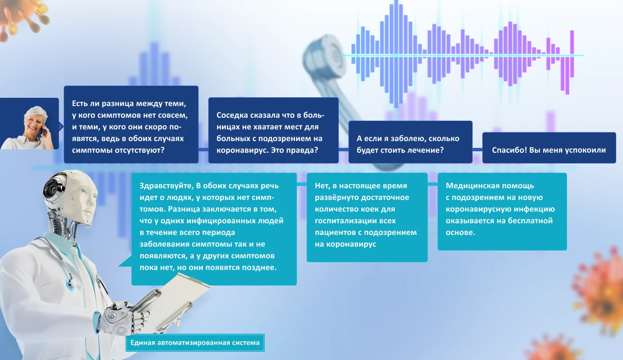 Нейроконтакт-центр станет единой точкой обслуживания граждан при обращении в экстренные службы и медицинские учреждения. Любой житель сможет без ожидания на линии получить оперативную скорую помощь и консультацию по COVID-19 или другим вопросам. На номера 122, 103 и 03 будет подключен интеллектуальный нейробот, который поможет гражданам в вопросах:
